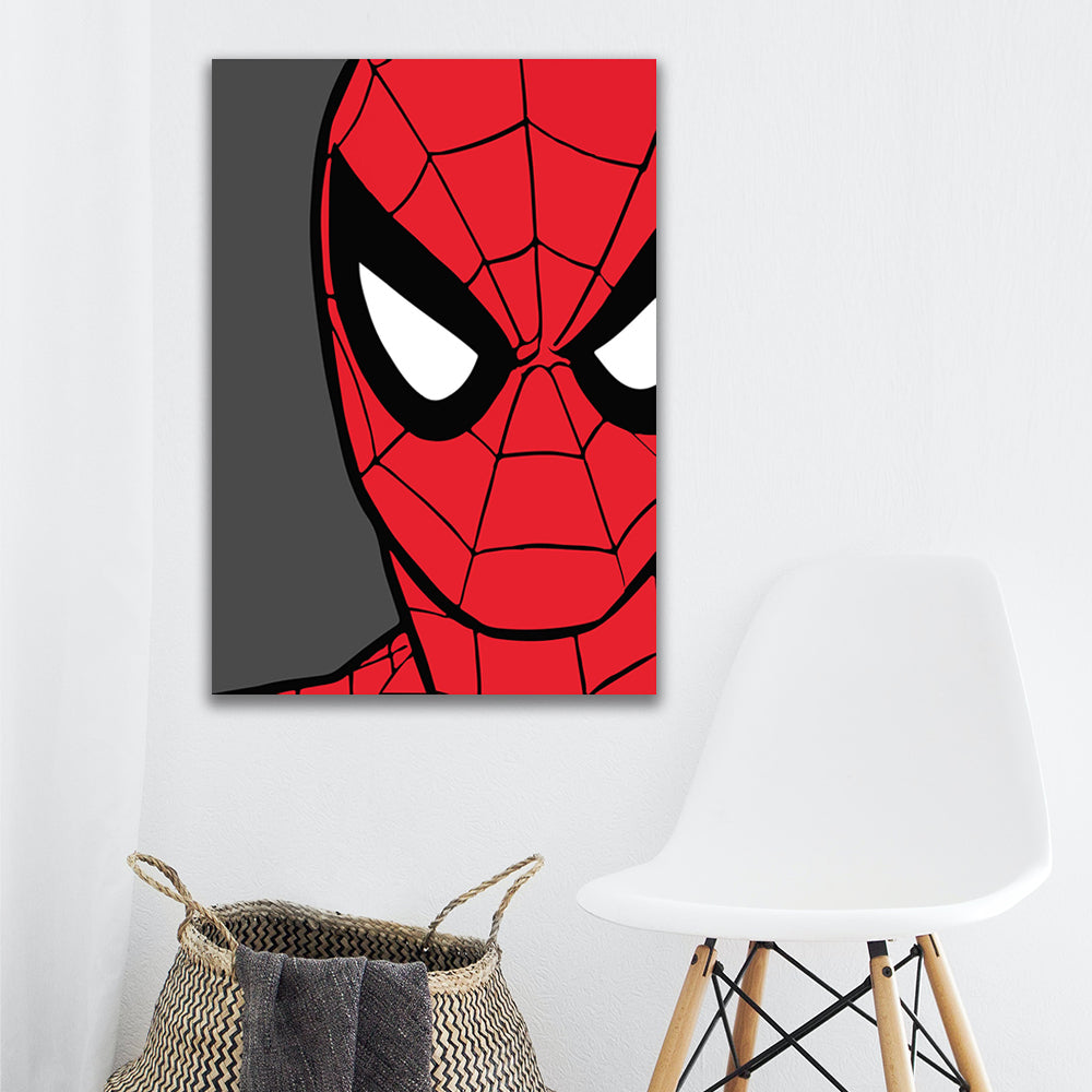 Este cuadro captura la esencia icónica de Spider-Man en un formato moderno y minimalista que impacta desde el primer vistazo. El primer plano del rostro, recortado de forma audaz, crea una sensación de cercanía y fuerza, como si el héroe estuviera vigilando silenciosamente el espacio que habita.